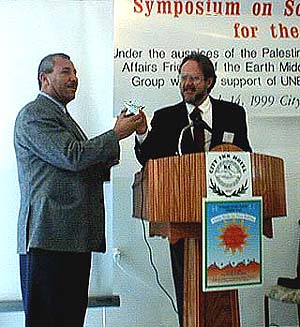 In recognition of the pioneering work of the Palestinian Energy Authority in making the Al-Kaabneh installation possible, Greenstar presented its International Innovation Award to the PEA. Shown (left) accepting the award is Dr. Abdul Rahman Hamad, Minister of Housing, from Greenstar director Michael North.