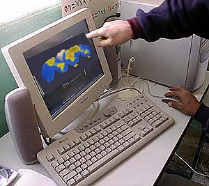 Once electricity was flowing for the first time to the school, people were eager to make it work; the first item connected was a Pentium-class multimedia computer, with camera, microphone, color printer, speakers, touchscreen and a small library of educational and work software.The teachers immediately began typing up a lesson plan, and the students explored the sights, sounds and history of Palestine. The touchscreen proved useful, for those people unfamilar with moving a mouse pointer and clicking a button.